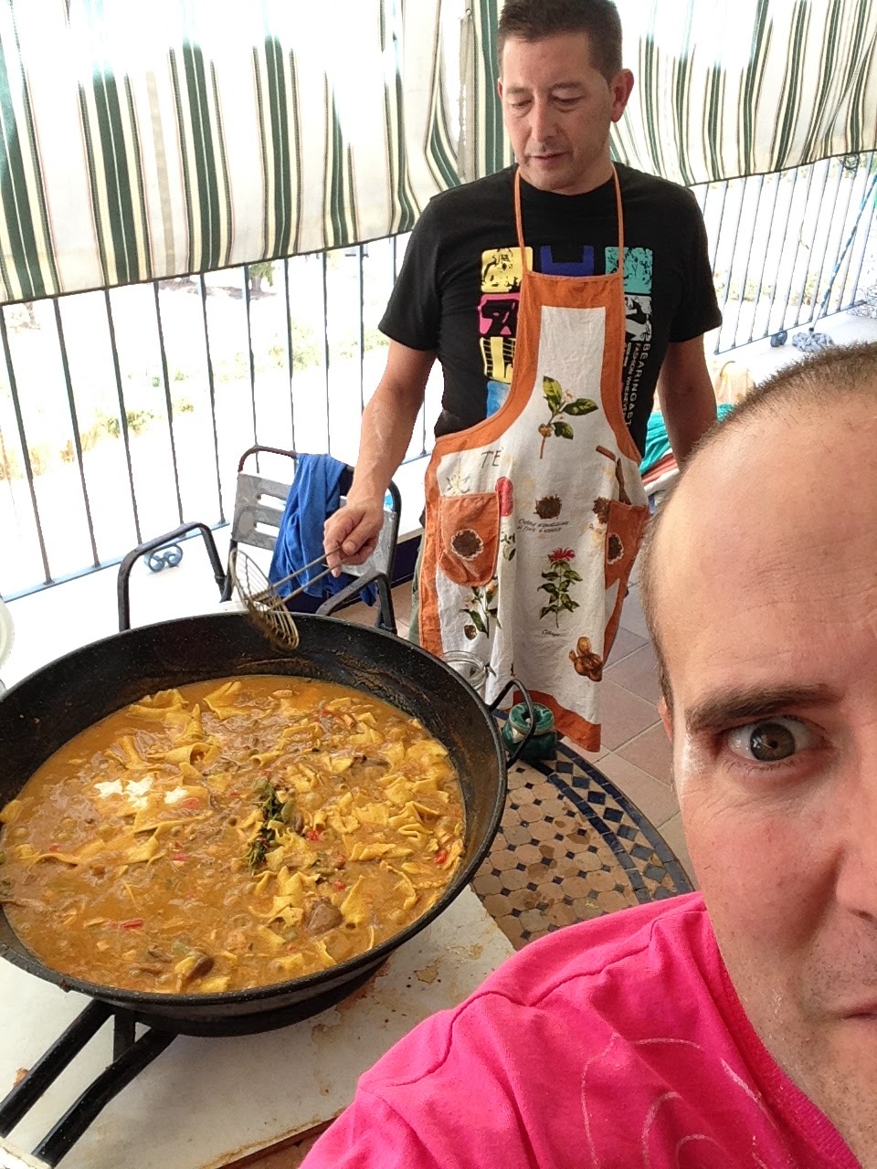 Estos de abajo, somos Lucas, Juan y yo. Desayunando la mañana de una juerga por carcabuey.